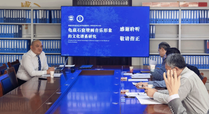 会上,谢万章老师就《十二木卡姆结构的历史建构与当代演变》、肖尧轩老师就《龟兹石窟壁画音乐形象的文化谱系研究》进行详细汇报,系统阐述了项目研究背景、核心问题、研究框架与实施路径。两项项目均立足新疆本土文化资源,聚焦非物质文化遗产与丝路音乐图像挖掘,具有鲜明地域特色和重要学术价值。专家们对项目学术意义与前期准备给予充分肯定,围绕研究边界、理论创新、田野工作及成果转化等关键环节提出建设性意见,为项目后续深化研究指明方向。
